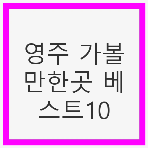 영주는 소백산과 부석사와 같은 멋진 자연경관과 역사적 유적이 어우러져 있습니다. 이제부터 소개할 영주 가볼만한곳 베스트10을 통해 여러분의 여행이 더욱 풍성해지길 바랍니다. 각 명소는 문화체험, 자연경관, 그리고 가족과 함께 즐길 수 있는 다양한 활동들로 가득 차 있습니다.